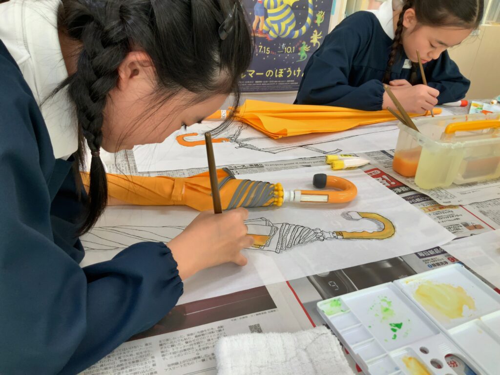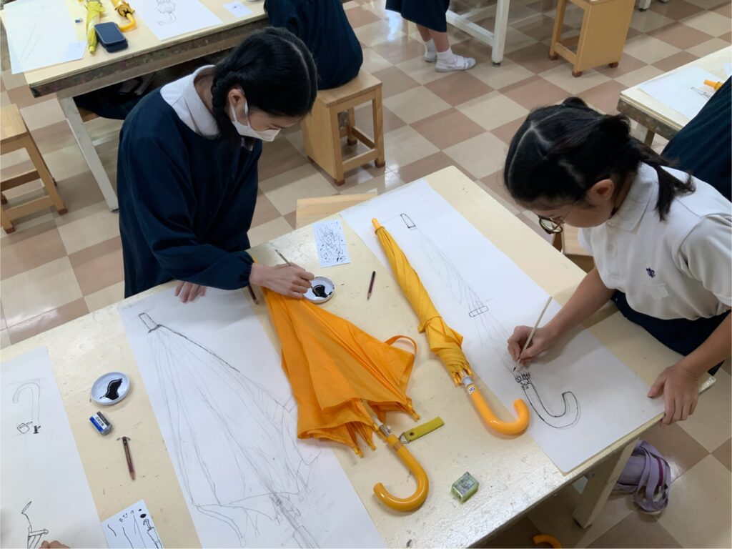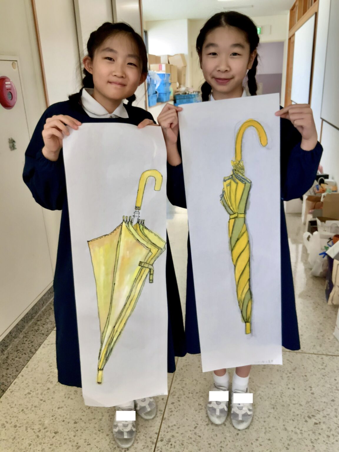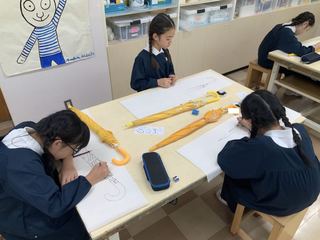 自分の身の回りにあるものに目を向けて、学校で使っている「傘」を描きました。