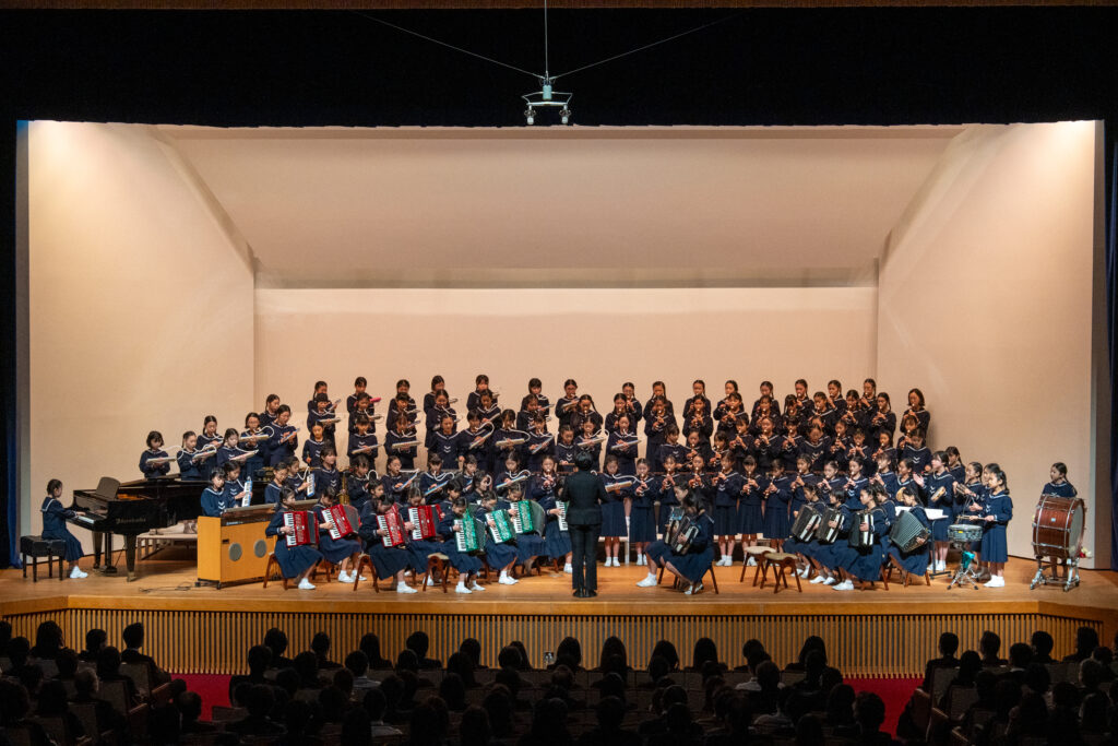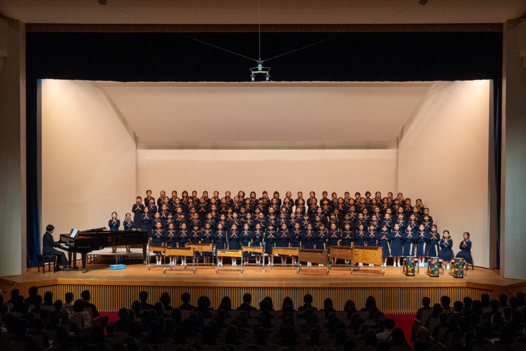11月末日に音楽会を開催しました。かわいらしい踊りがついた音楽劇や、お祭りのようににぎやかな合奏、歌詞をかみしめて歌う合唱など、学年の個性に応じた様々な楽曲が演目となっています。どの学年も一生懸命に練習に励み、当日は「今までで一番よかった」と胸を張る演奏ができました。