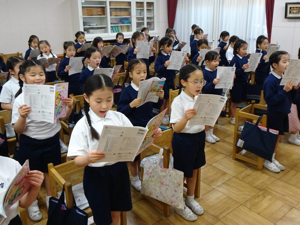音の高さを手で表したり、歌詞に合った美しい歌声を目指して何度も歌ったりしました。